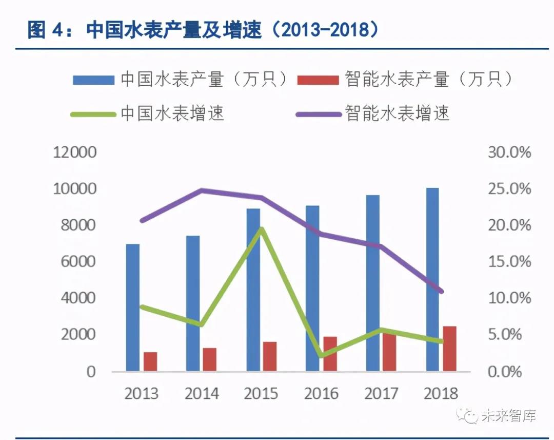 ? 需求放量:多年來,供水行業存在諸多管理痛點,一方面,人工抄表隨著人力成本上升,面臨越來越高的 運營成本壓力,同時人工抄表也存在結算周期長、易出差錯的缺陷。另一方面,我國的供水企業漏損率居 高不下,根據《城市供水統計年鑒》,2015 年 603 個建制市供水企業平均產銷差率為 20.7%。2017 年 1 月,《城鎮供水管網分區計量管理工作指南—供水管網漏損管控體系構建(試行)》提出:到 2020 年,全國 城鎮公共供水管網漏損率控制在 10%以內。政策的出臺使得漏損治理的需求更加迫切。而使用智能水表一 方面可通過取代人工抄表、提升運營效率,另一方面也是供水企業開展管網漏損治理的基礎。此外,2017 年 3 月,全球首個 NB-IoT 物聯網智慧水務商用項目發布,1200 余只 NB-IoT 智能水表在深圳市鹽田區和 福田區的多個小區完成部署;成功的示范案例也打消了行業顧慮,加速了智能水表需求的釋放。
